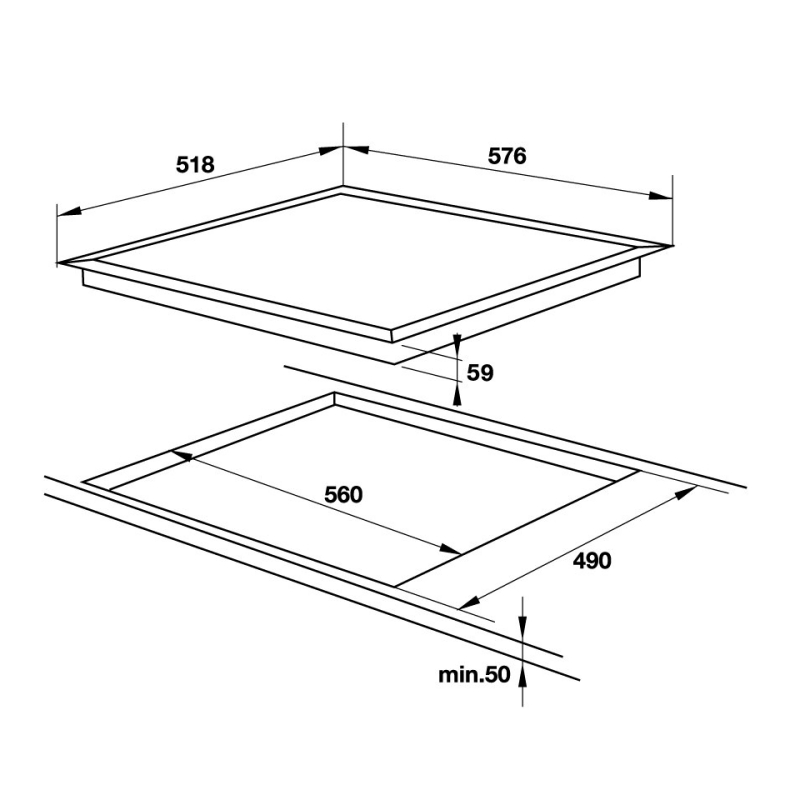 - Kích thước lắp đặt: 560x490xmin50mm