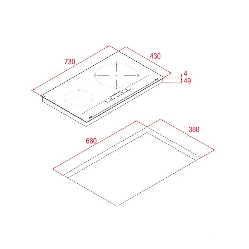 - Kích thước khoét lỗ đá: 380mm x 680mm