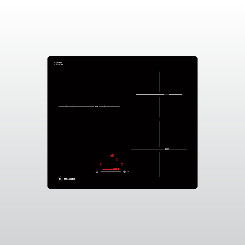 Bếp kính âm 2 từ 1 điện Malloca MIR 593 được thiết kế theo kiểu vuông, tiện lợi cho các không gian chật về bề ngang nhưng vẫn có thể nấu được 3 món ăn cùng một lúc.