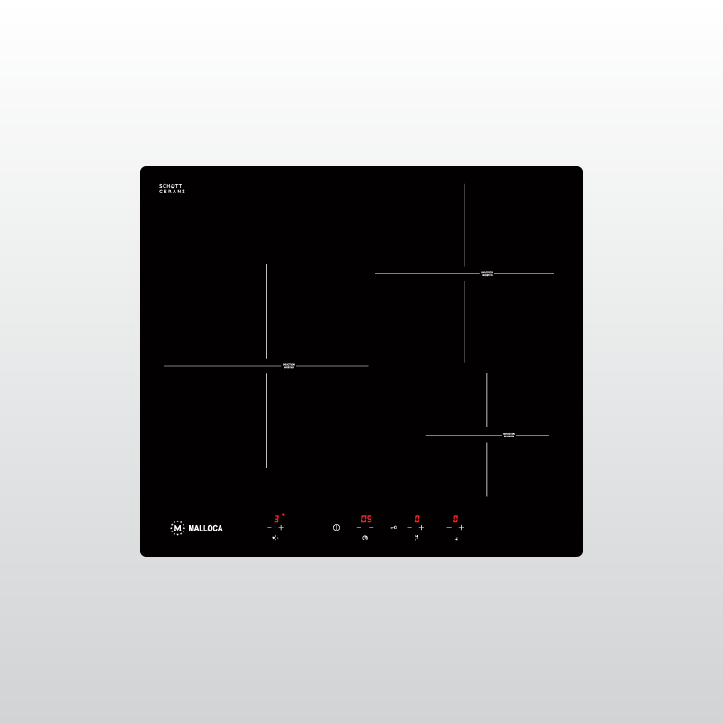 Đặc điểm của Bếp kính âm 3 vùng từ Malloca MI 593 BN: