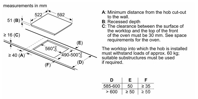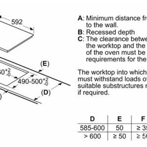 - Kích thước hốc tối thiểu cần thiết để cài đặt (HxWxD) 51 x 560-560 x 490-500